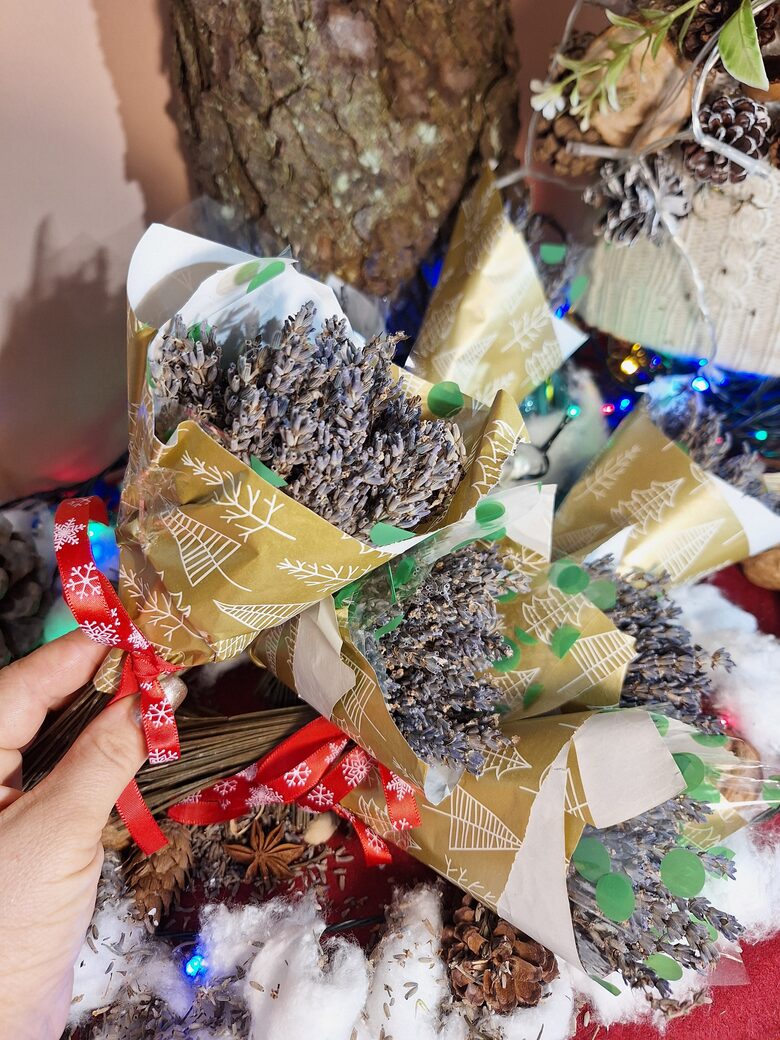 Lieliska dāvana Ziemassvētkiem, kas piepildīta ar lavandu ziediem, smaržām un rūpēm.